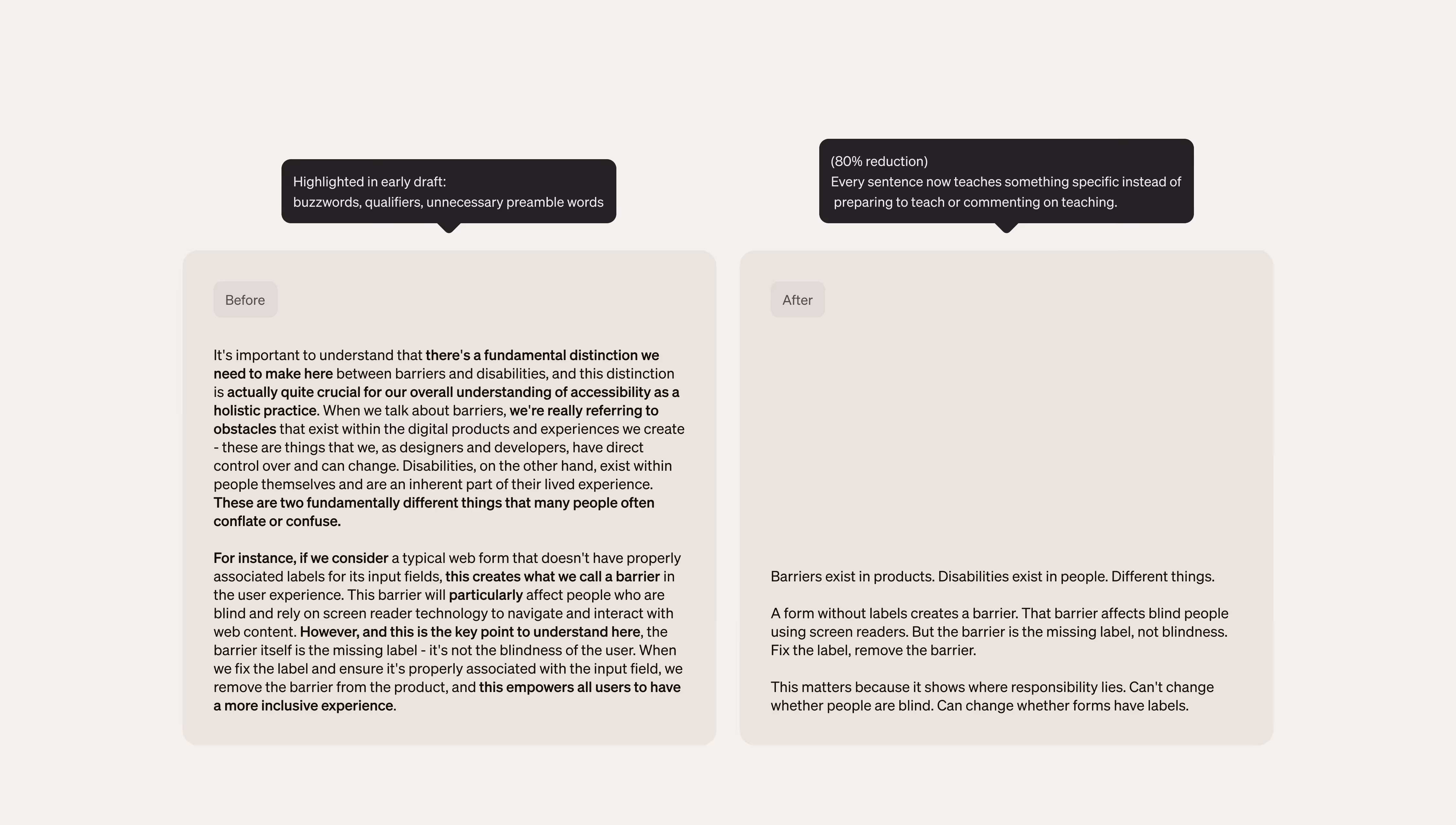 Roles - Where barriers originate. Content creates structure. Design creates patterns. Development implements both. This section maps decisions to roles and shows timing.